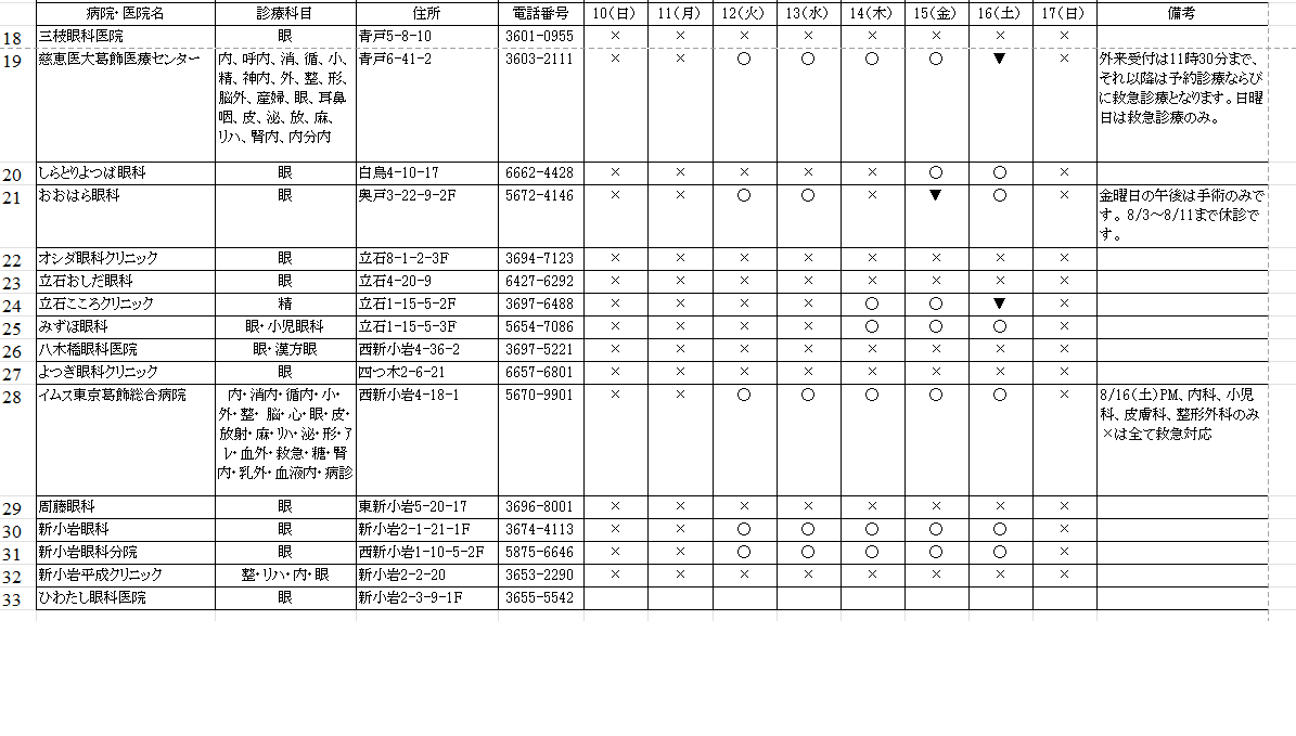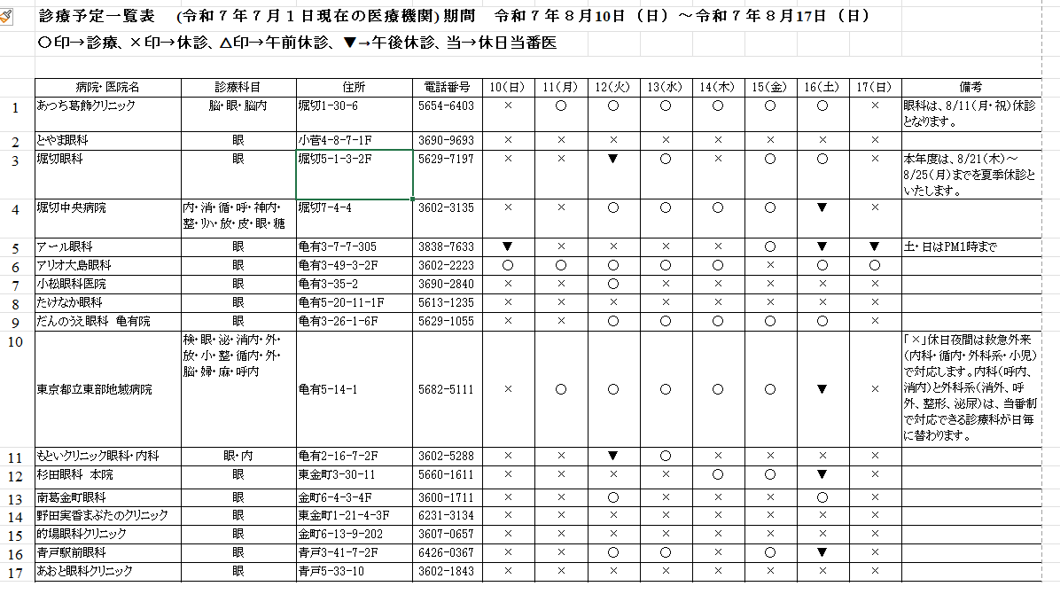 <8月、9月の葛飾区内の眼科のお知らせ>